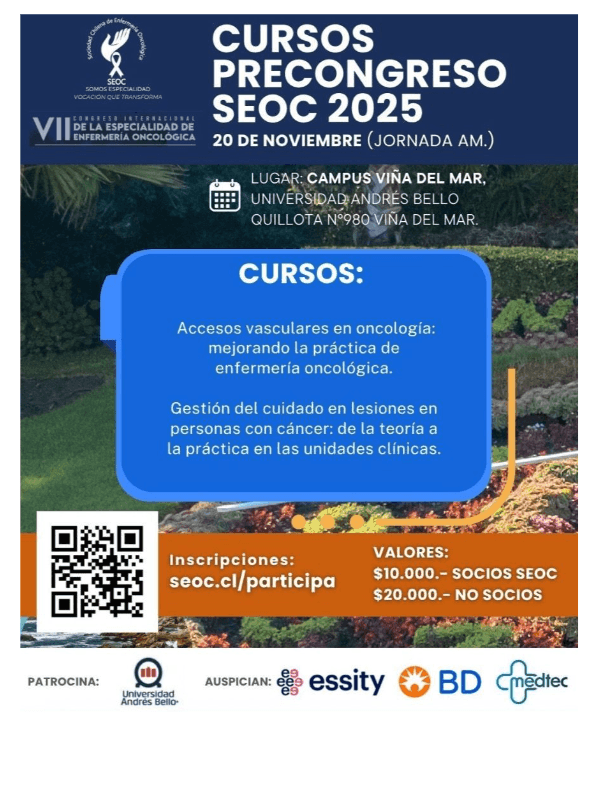Cursos Precongreso SEOC 2025, el 20 de noviembre en el Campus Viña del Mar de la Universidad Andrés Bello.